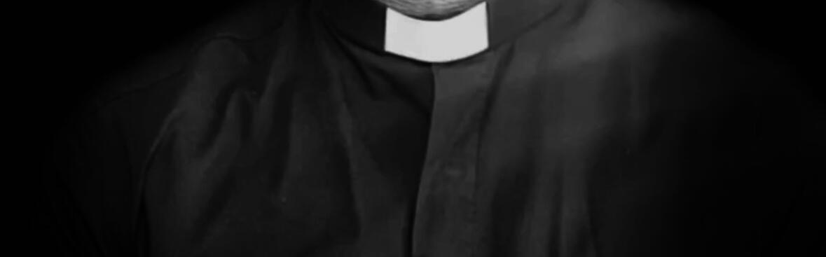 黑色神父服、左胸有口袋,褲裝、皮鞋
